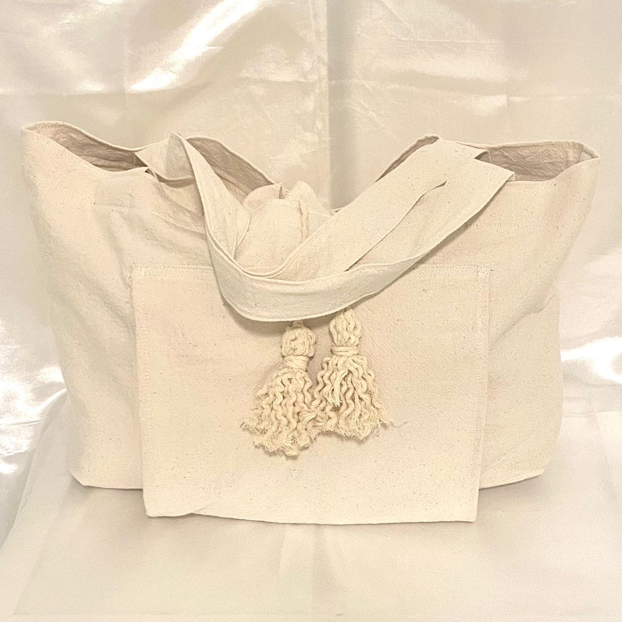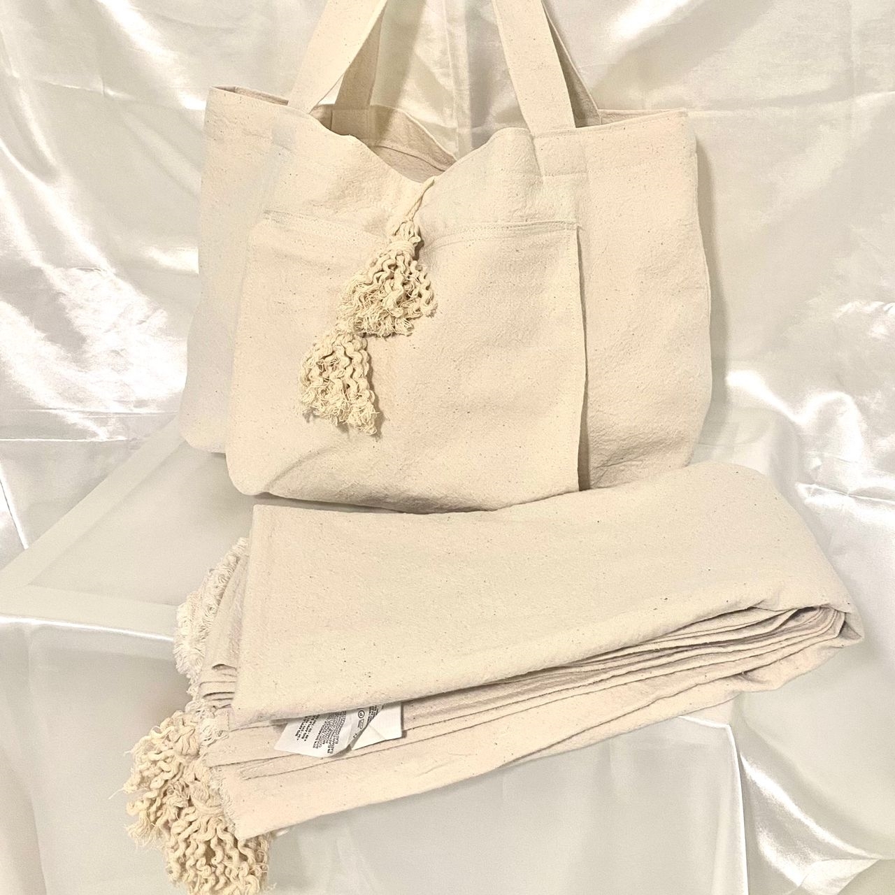 پارچه صددرصد نخ، قابل شستشو،مناسب برای ساحل،یوگا و حتی باشگاه ورزشی،دارای جیب بیرونی برای قراردادن زیرانداز در بیرون از کیف.