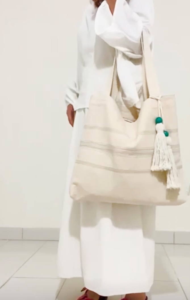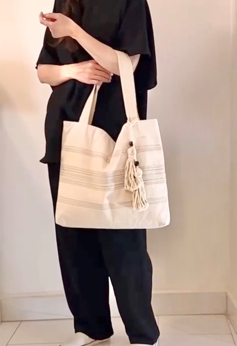 این کیف دست دوز با پارچه کتان ضخیم دوخته شده است. طرح سه خط روی کیف گلدوزی با چرخ میباشد. دارای آستر از جنس نخ سبک است. هر دو پارچه آبکشی شده و آبرفت نخواهد داشت. طول کیف ۵۰ سانتی متر، عرض ۱۵ سانتی متر و ارتفاع آن ۴۰ سانتی متر میباشد. ارتفاع کلی کیف با احتساب بند ۷۰ سانتی متر میباشد. به طور پیش فرش این کیف زیپ ندارد و از دو بندینک برای بستن آن استفاده میشود. شما میتوانید در صورت نیاز کیف را با زیپ سفارش دهید. با توجه به اینکه سایز این کیف بزرگ بوده و از جنس مقاومی میباشد، بسیار کاربردی است. نکته جالب توجه دیگر این است که طراحی کیف به طریقی است که در صورت خالی بودن کیف هم، همچنان بر روی دوش زیبایی و جذابیت دارد. کاربردی بودن کیف های پارچه، به خصوص جنس های مقاوم، بیشتر به این دلیل است که میتوان آنها را تا کرده و همراه داشت و در صورت لزوم از آنها هم به عنوان کیف دوشی و هم به عنوان یک ساک همراه استفاده کرد. نکته جالب دیکر اینکه رنگ این کیف به راحتی با هر لباس ای هماهنگ میشود. قابل شستشو با ماشین لباسشویی است. بهتر است از حالت شستشوی دستی ماشین استفاده نمایید. برای شستشو پیشنهاد میشود از لکه برهای رنگین شوی با کیفیت استفاده نمایید. همچنین جهت سفارشی سازی در ابعاد و رنگ به دلخواه خود، حتما قبل از ثبت سفارش، از طریق گزینه « تماس با ما » که در صفحه اول فروشگاه قرار دارد موارد درخواستی خود را ذکر کنید. تا هنرمندان دست دخت سفارش دلخواه شما را آماده کنند. هزینه تغییرات و سفارشی نمودن کالا بعد از انتخاب های شما قابل برآورد میباشد.